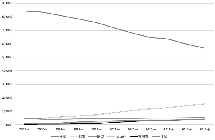 服装进口:中国占比十年间下滑27个百分点,越南增加11个百分点