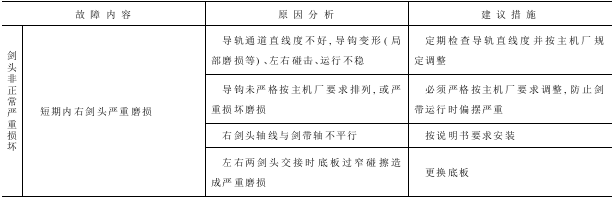 为了保证剑头正常使用,维修工必须每月用定规检查轨道的直线度。应经常检查剑头、剑带在轨道中自由滑动情况和剑带与导轨之间的横向间隙,间隙要求尽量小,并按上机说明书进行调整,或抽出剑头剑带,观察剑头使用磨损状态,及时更换剑头上的损坏件(如弹簧、螺丝、开合器、底板等)。